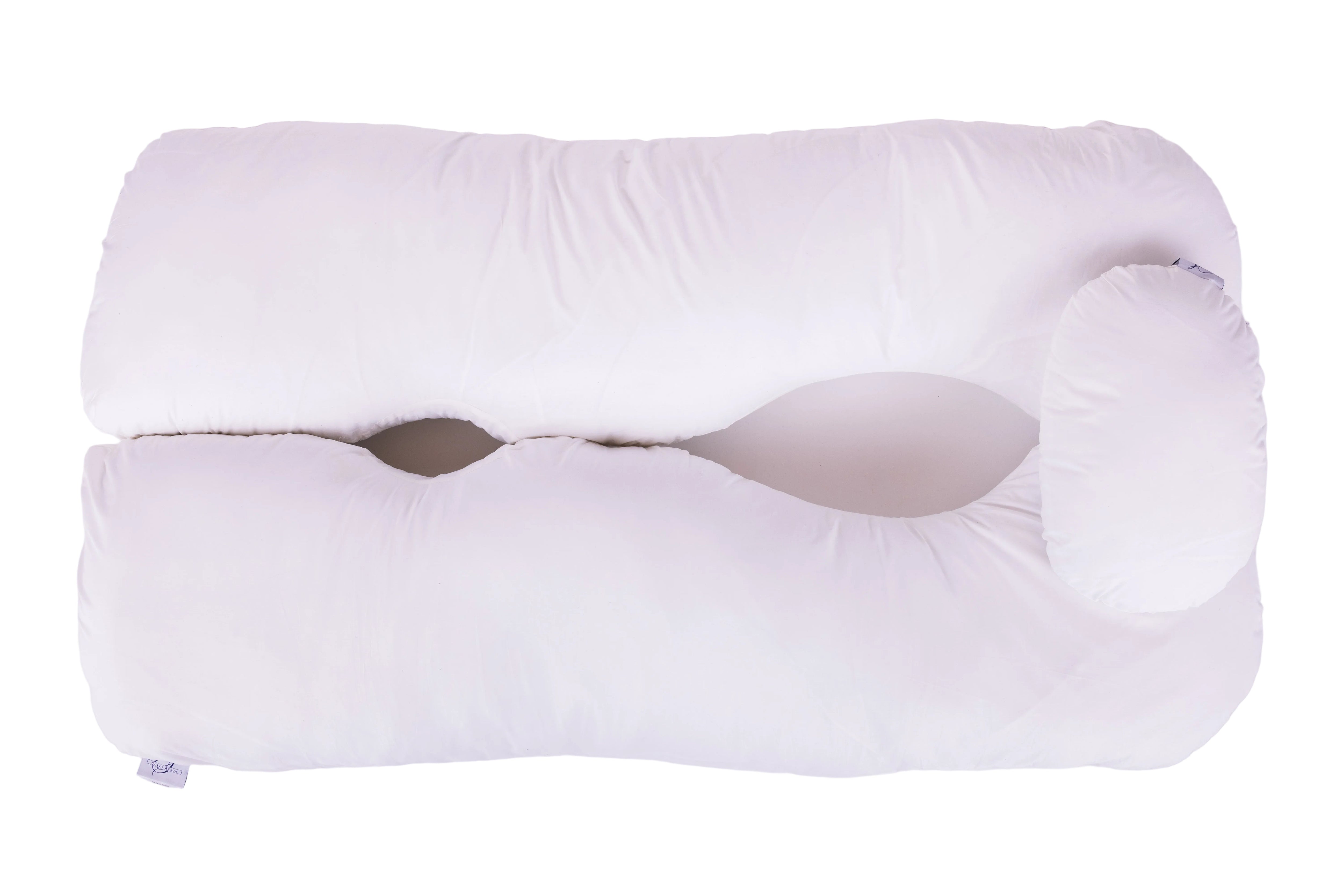 Providing support on both sides of your body is the key to staying on your back while sleeping. The two contoured side pillows in the Sleep Again Pillow System are designed to do just that - provide support to keep you snugly in place.