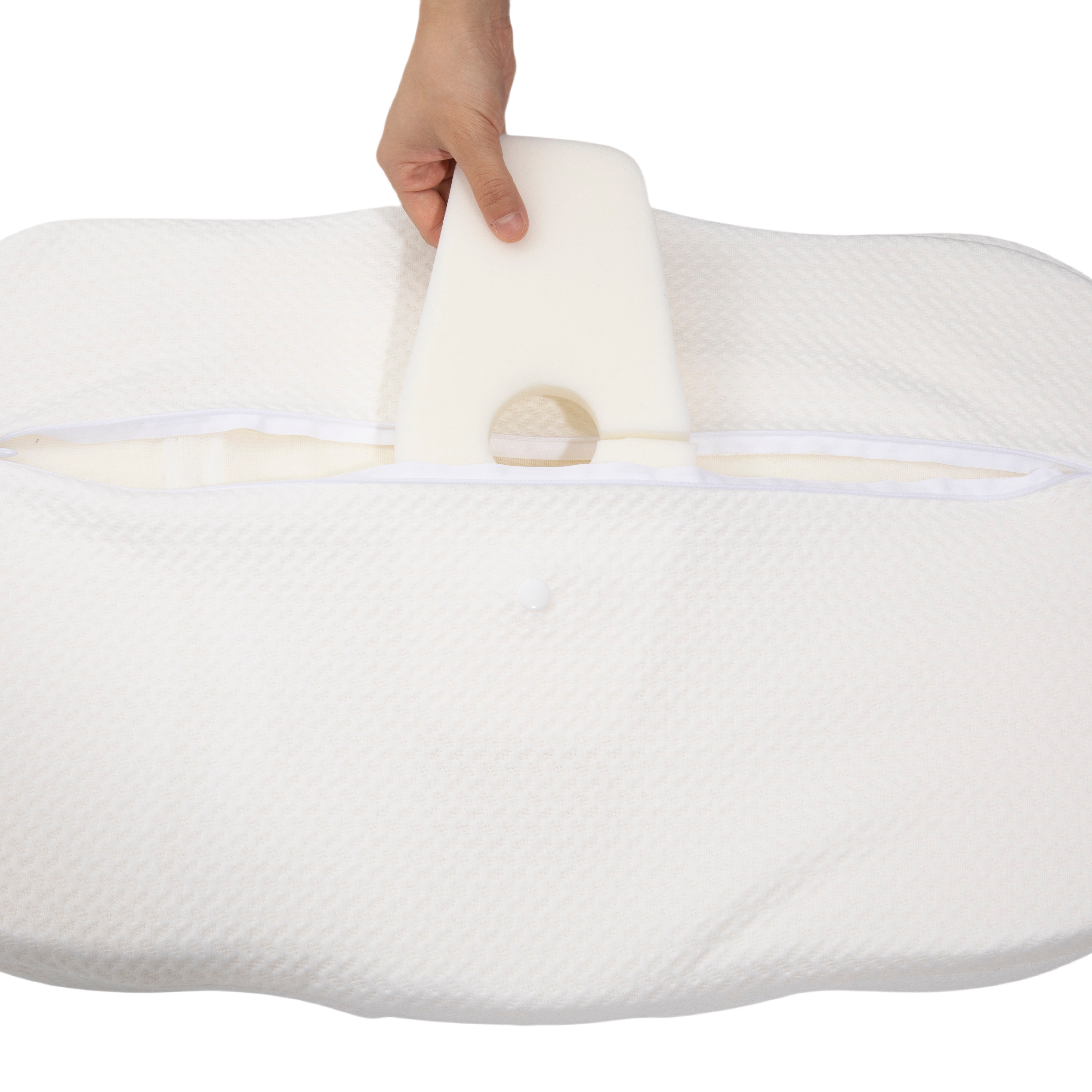 Providing support on both sides of your body is the key to staying on your back while sleeping. The two contoured side pillows in the Sleep Again Pillow System are designed to do just that - provide support to keep you snugly in place.