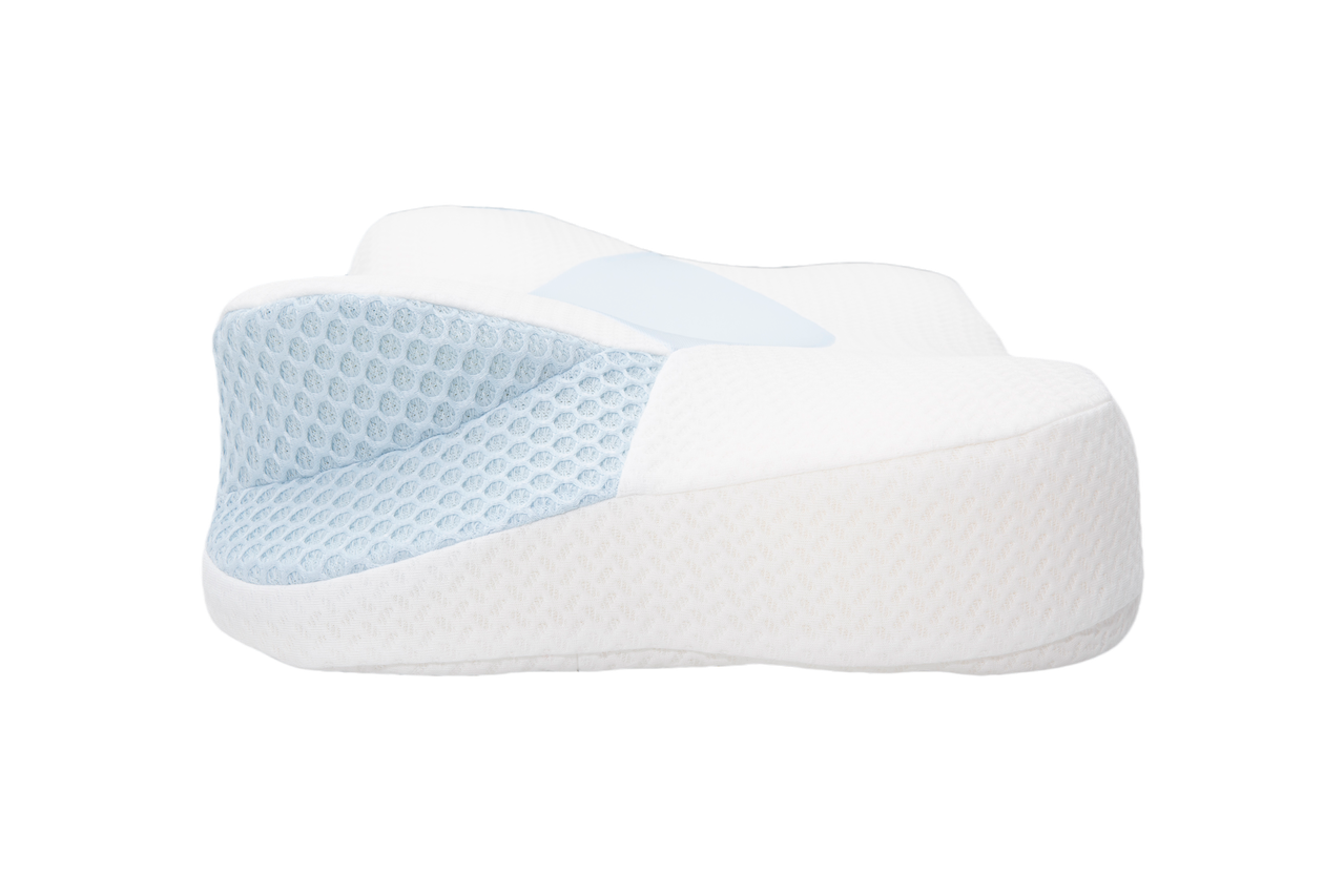Providing support on both sides of your body is the key to staying on your back while sleeping. The two contoured side pillows in the Sleep Again Pillow System are designed to do just that - provide support to keep you snugly in place.